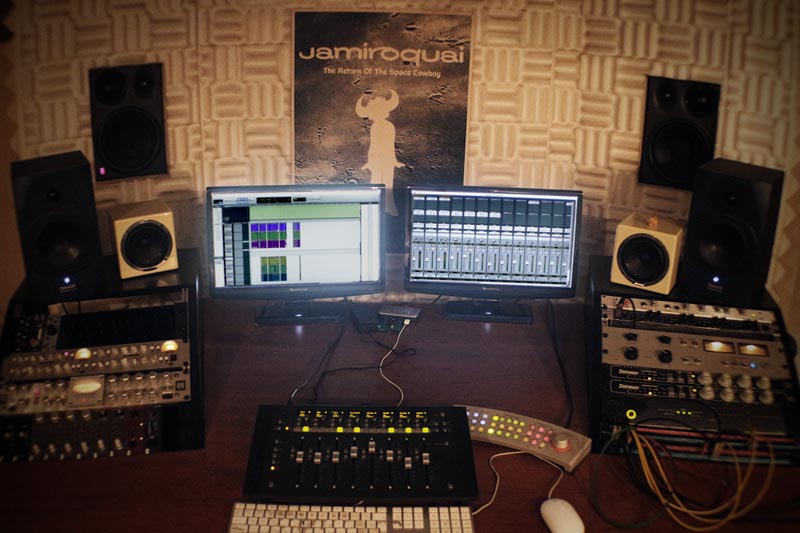 Hier findet man alles an analogem und digitalem Equipment, das als eine der höchsten Standards in der Industrie gewertet wird. Der akustisch eingemessene Raum bietet alle Möglichkeiten, die für eine gelungene Produktion erforderlich sind.